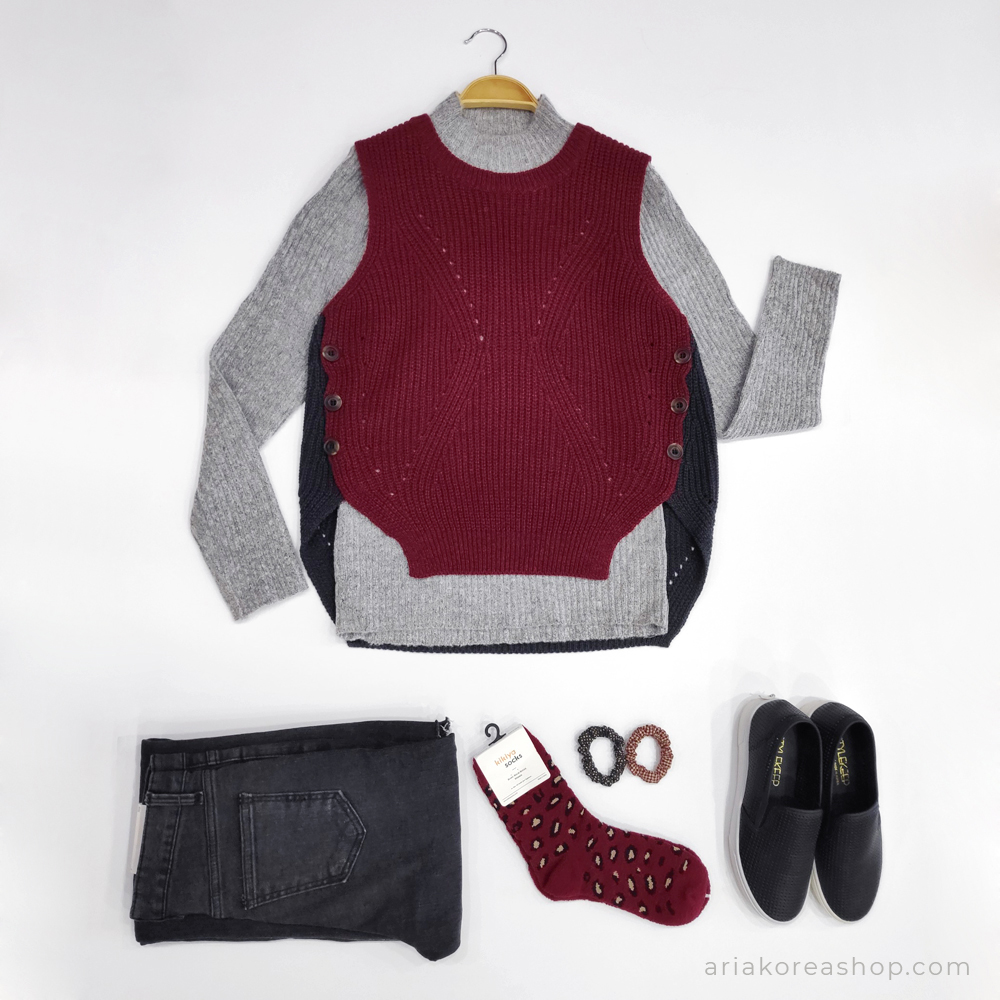 Áo gile len Hàn Quốc Knit00448 thiết kế tinh tế, gam màu trầm ấm, rất phù hợp với tiết trời thu đông. Có thể kết hợp áo gile với áo sơ mi, áo kiểu hay áo len mỏng.