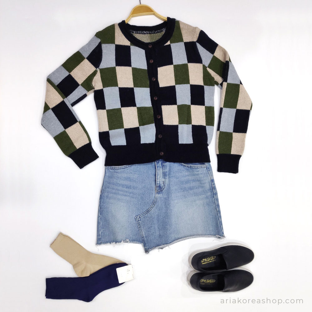 Áo khoác len Hàn Quốc với họa tiết kẻ ô vuông, chất liệu len dày dặn, ấm áp.