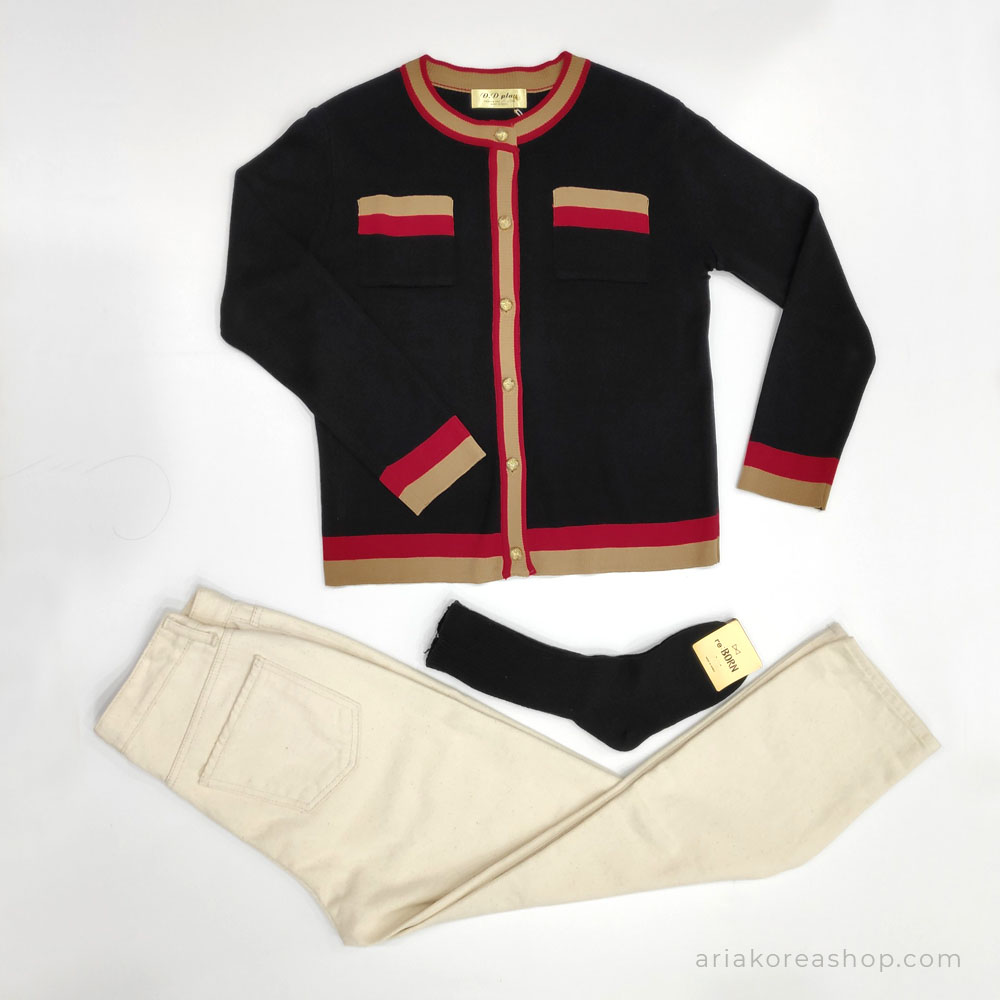 Áo khoác len Hàn Quốc cổ tròn, chất liệu len dày vừa phải.