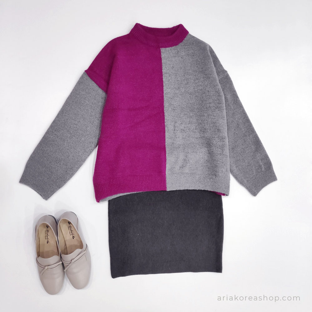 Áo len dáng xuông, phối màu theo mảng hiện đại, trẻ trung. Áo chất liệu len dày dặn, nhẹ và ấm.