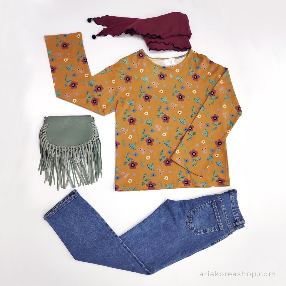 Áo nỉ da cá Hàn Quốc, dáng xuông freesize, họa tiết hoa lá xinh tươi.