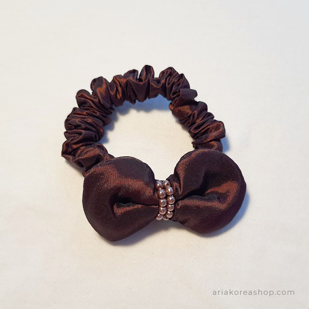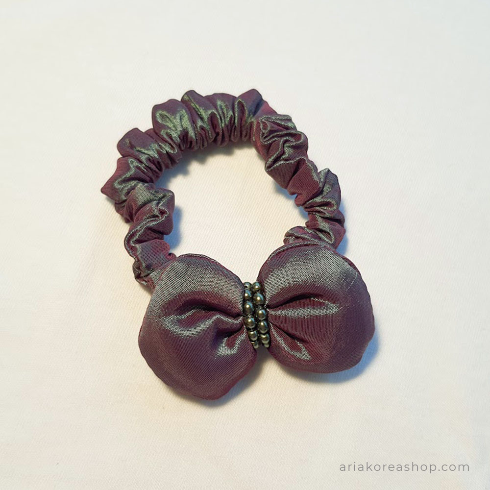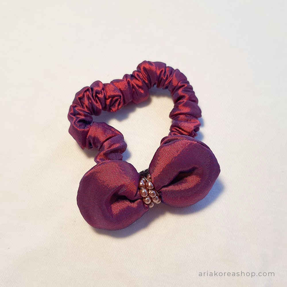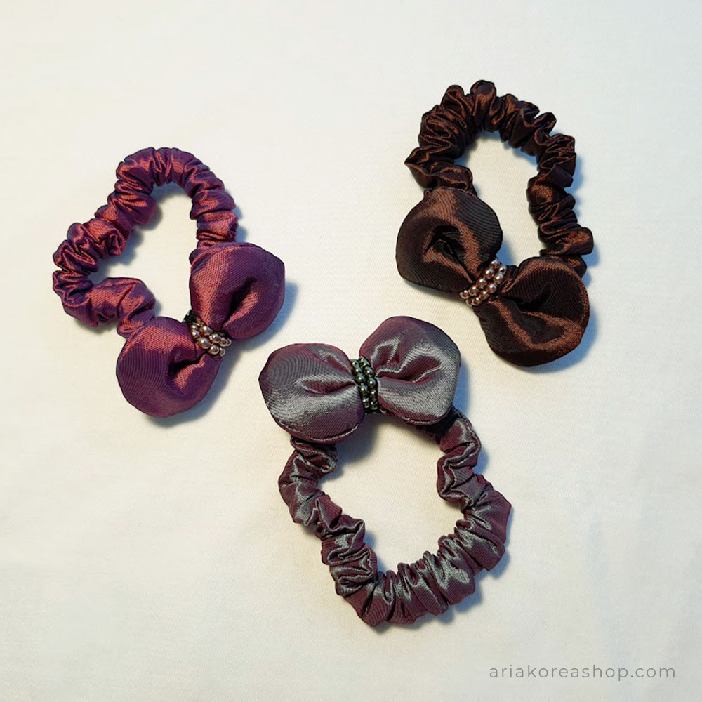 Buộc tóc Hàn Quốc hình nơ, làm bằng vải trơn bóng cùng điểm nhấn hạt cườm tròn. Chất liệu êm ái, dễ chịu dành cho mái tóc thân thương của bạn.