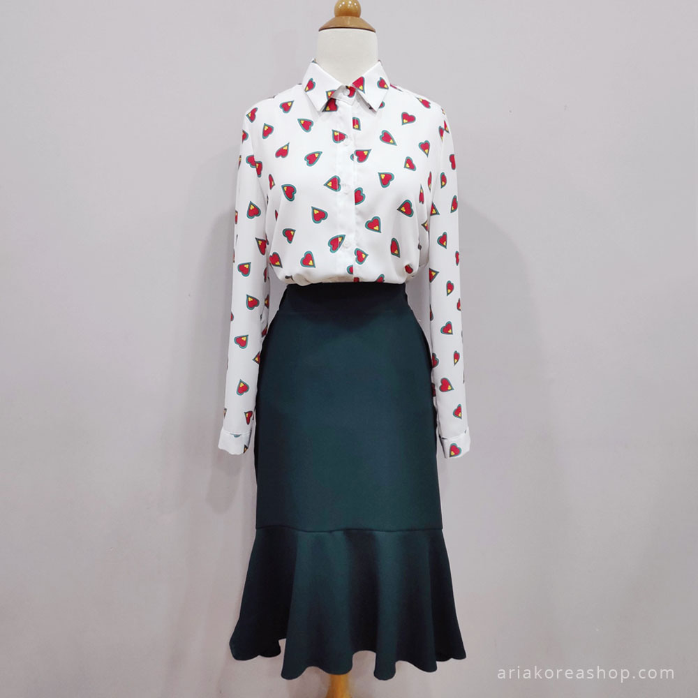 Chân váy freesize dáng đuôi cá, phía sau có chun đồng màu vải.