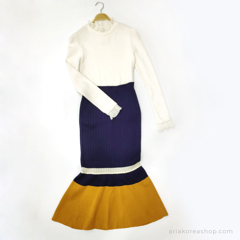Chân váy len Hàn Quốc dáng dài, xòe đuôi cá. Chân váy chất liệu len co giãn cao cấp, cạp chun to bản phía trong.