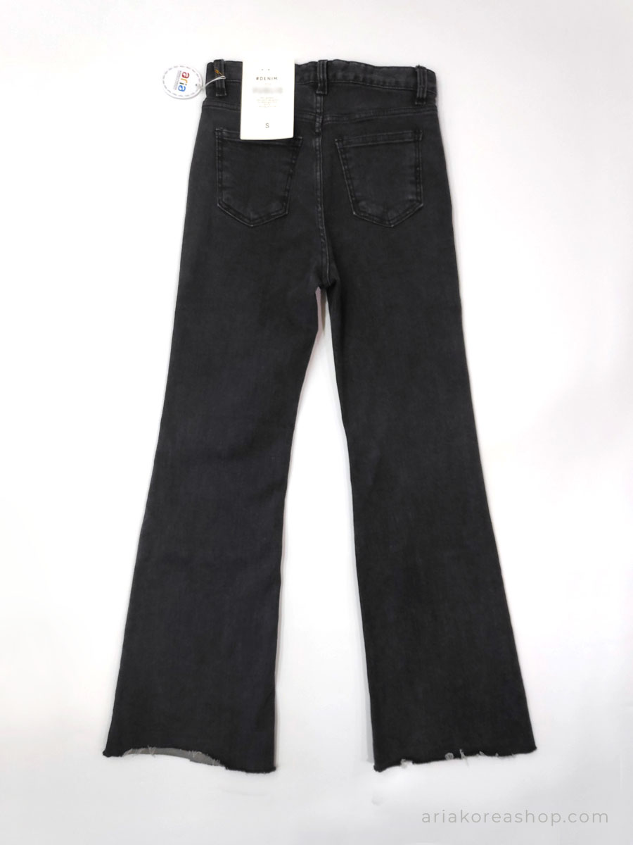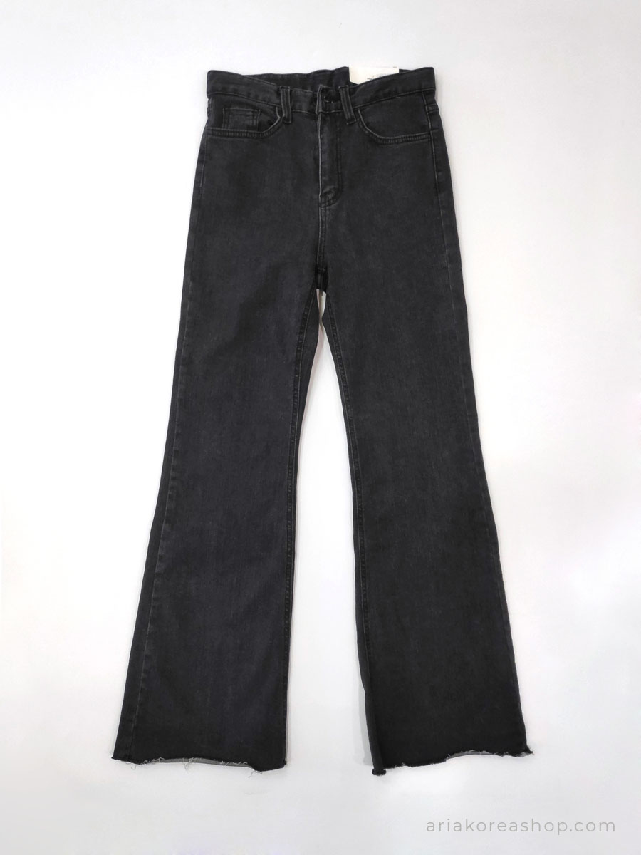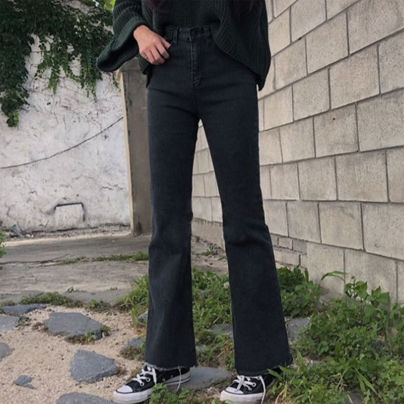 Quần jeans Hàn Quốc ống loe, co giãn, màu đen xám, size S.