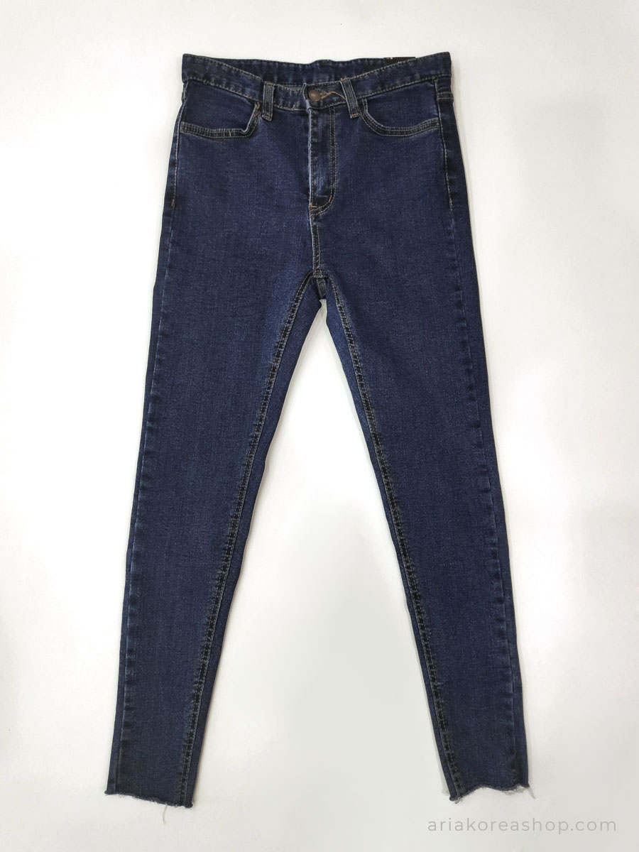 Quần jeans skinny Hàn Quốc, chất liệu co giãn, màu xanh đậm, size M.