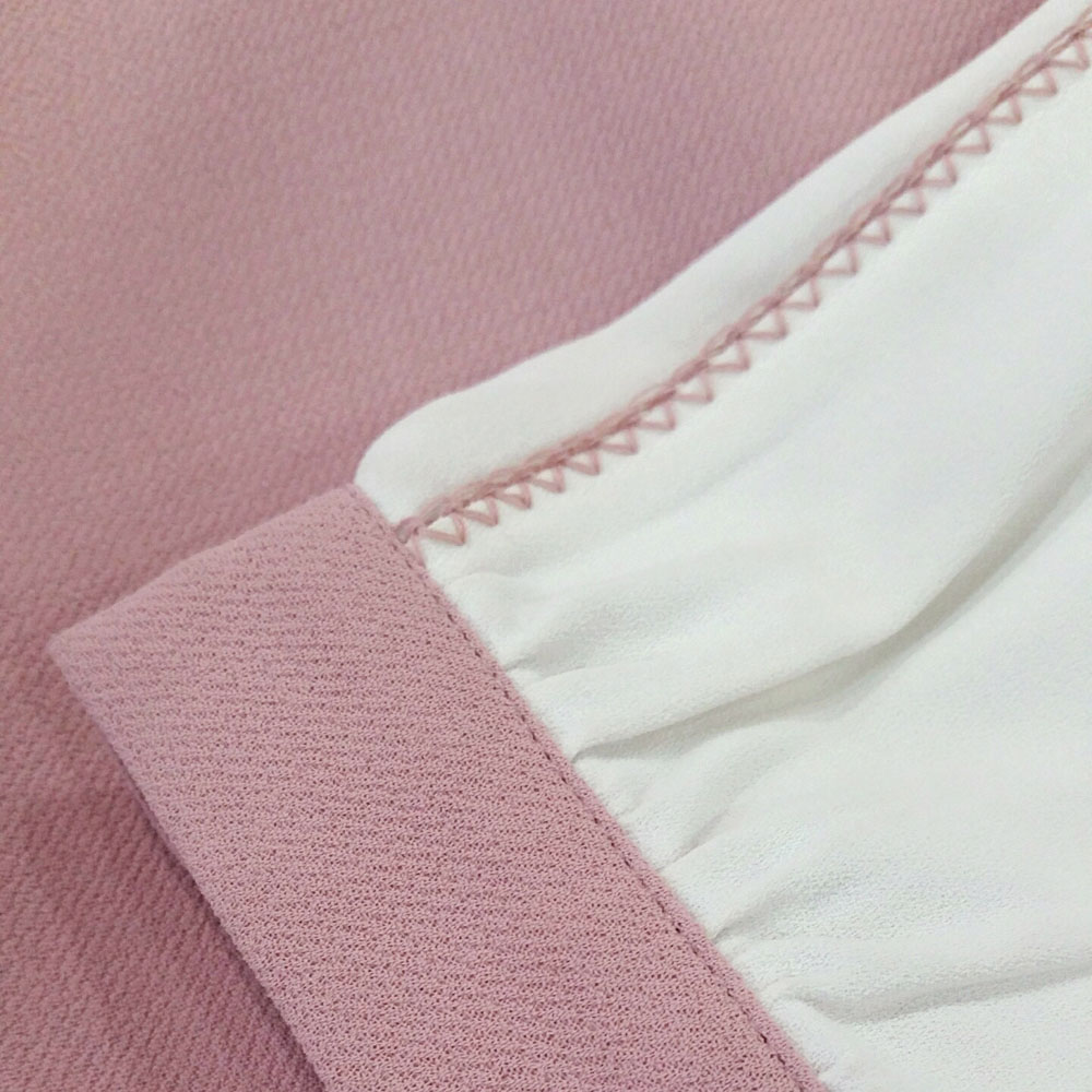 Váy dài tay dáng xòe, freesize, có khóa kéo phía sau. Váy phối màu trắng hồng, tôn da và thanh lịch.