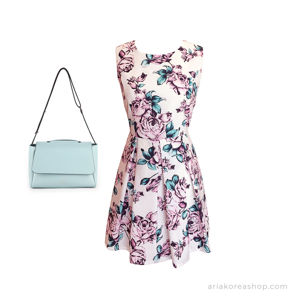 Váy Hàn Quốc Ops01491 với kiểu tay sát nách, dáng thắt eo, xòe chân chữ A. Họa tiết hoa to bản, màu sắc lạ mắt và ấn tượng. Váy freesize, có khóa kéo phía sau.