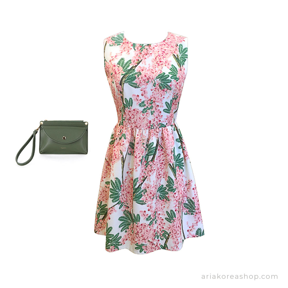 Váy hoa freesize, họa tiết trẻ trung. Phía sau váy có khóa kéo. Váy phù hợp với người từ 45-52kg
