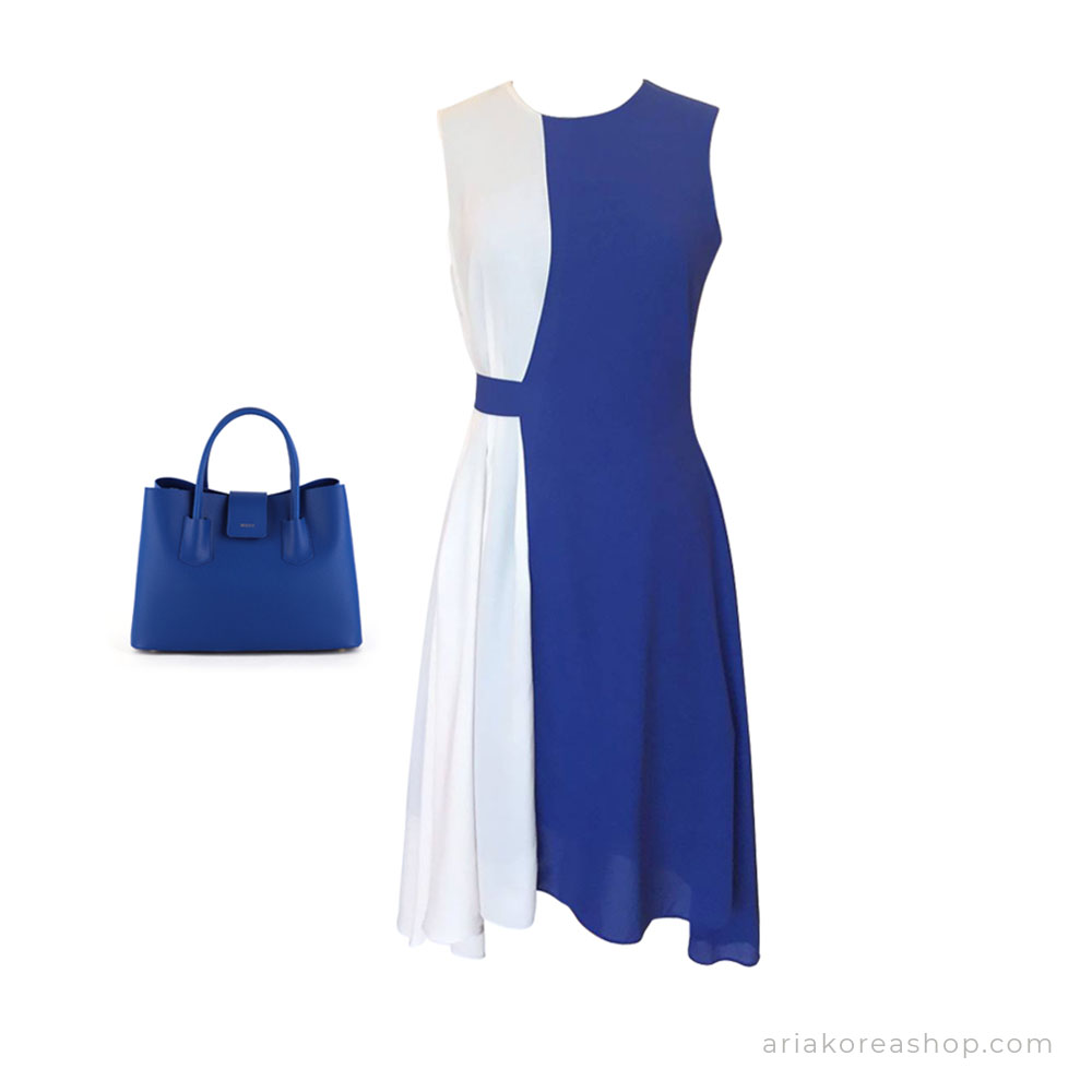 Váy Hàn Quốc Ops02028, chất liệu voan, nhẹ nhàng, có độ bay. Váy freesize, phối gam màu trắng xanh lam, cùng điểm nhấn eo.